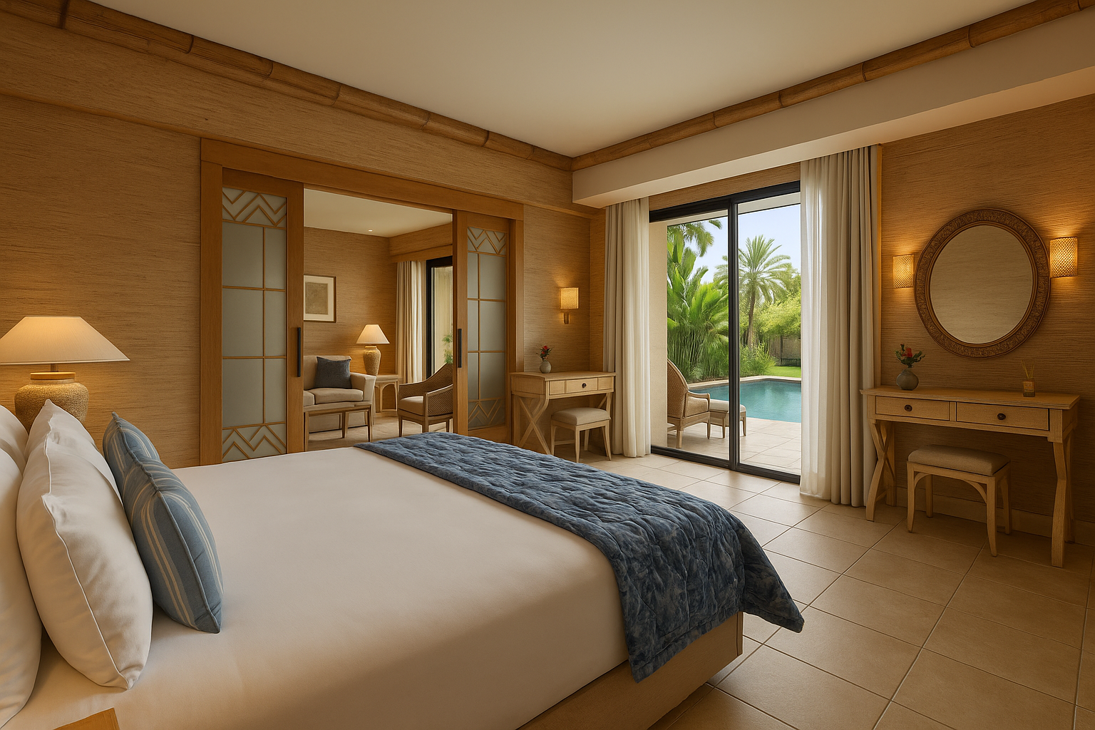 The Presidential Suite at Joktel Resorts. This expansive and exquisitely designed sanctuary offers unparalleled space and sophistication. Featuring multiple lavishly appointed rooms, including a grand master bedroom, separate living and dining areas, it provides the ultimate private retreat for VIP guests, special celebrations, or the most discerning travelers seeking an truly indulgent escape.